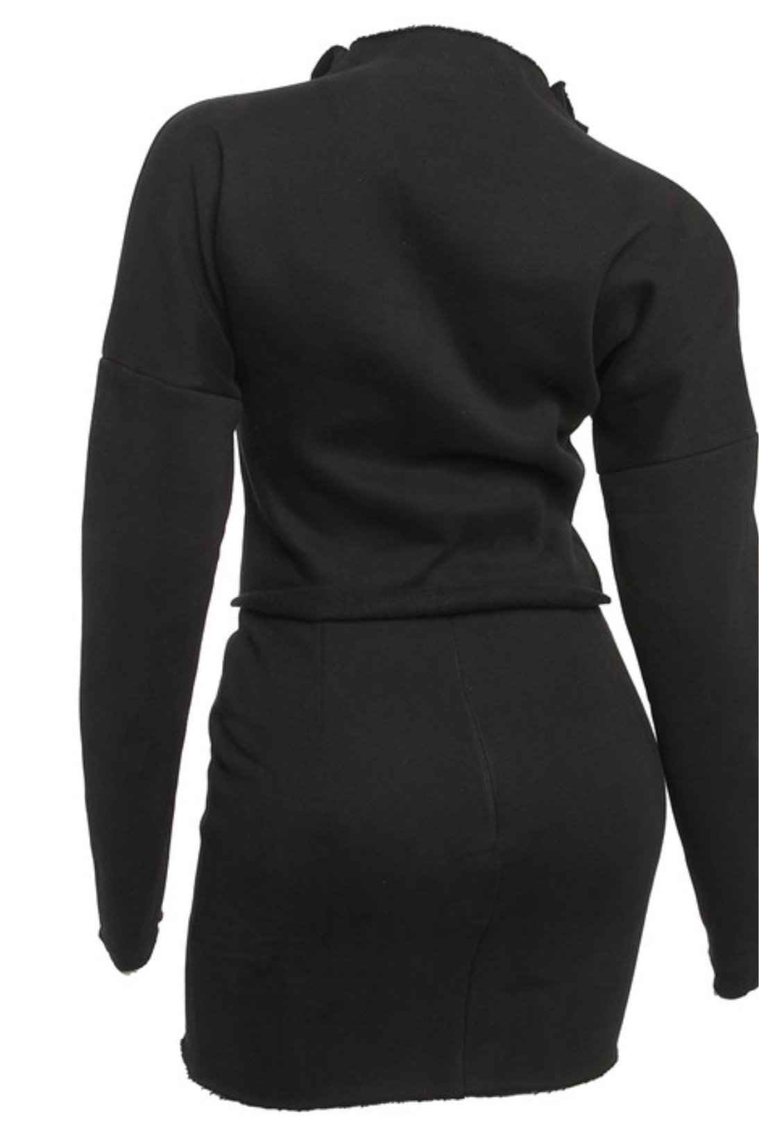 Fleece top and skirt set. Top with 2 way zipper closure with matching high waist mini skirt with hidden zipper closure in back. Stretch , soft material, good hold.