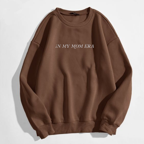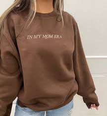 3. **Rich Coffee Brown Color:** The "In My Mom Era" Sweatshirt comes in a sophisticated coffee brown hue that adds a touch of warmth and elegance to your wardrobe. This versatile color complements various outfits and occasions.